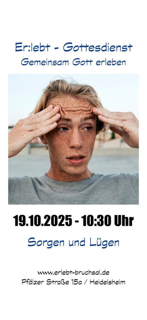 Herzliche Einladung zum Erlebt-Gottesdienst am 19.10.25, 10.30 Uhr mit Michael Piertzik im Haus der christlichen Gemeinde, Pfälzer Str. 15a, 76646 BR-Heidelsheim. Im Anschluss gemeinsames Mittagessen. Der Gottesdienst wird live gestreamt unter http://dein.li/Godi