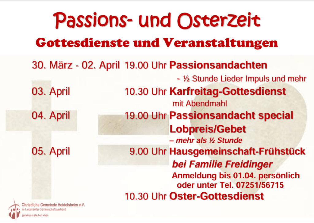 Hier eine Übersicht über die nächsten Gottesdienste: